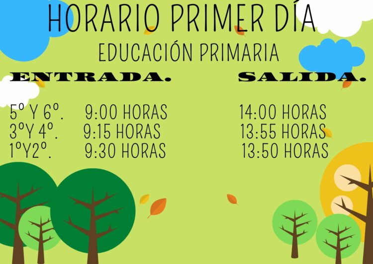 Os dejamos los horarios del primer día de entrada al cole. ¡Os esperamos!