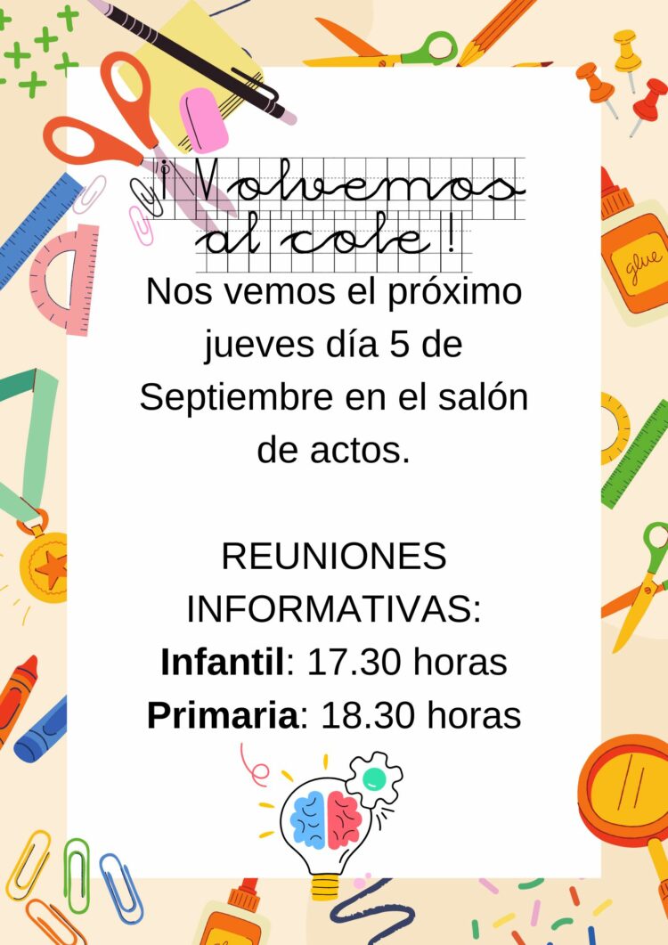 - Educación Infantil: jueves 7 de septiembre a las 18:30h.